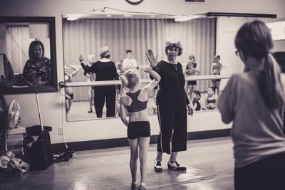 Our studio features four spacious, professionally equipped dance studios with state-of-the-art flooring and ballet barres, creating a safe and supportive environment for dancers of all ages. Families can relax in our cozy lounge with real-time class viewing, or gather in our kitchen-style space, perfect for snacks, conversation, and downtime between classes.